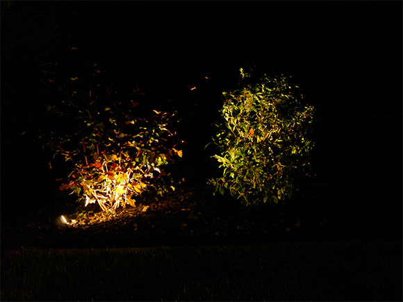 - LED-Lichter mit einer Reichweite ab 3 m eignen sich zur Beleuchtung von Fassaden, großen Skulpturen, Sträuchern oder Bäumen